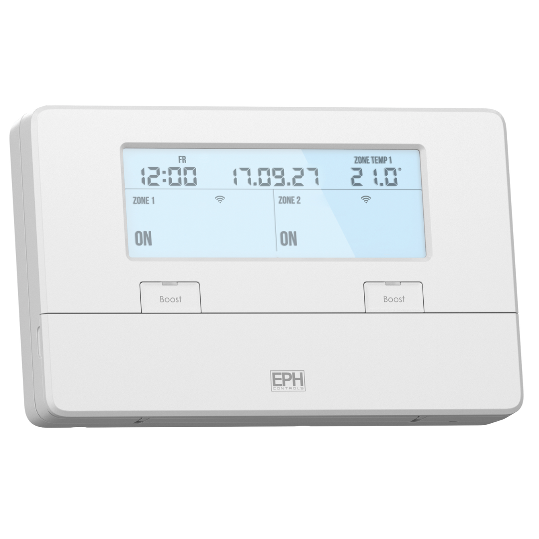 2 zone RF programmer suitable for use with an 2 no. RF thermostats. This programmer is compatible with the EMBER App when fitted with an EPH WiFi gateway