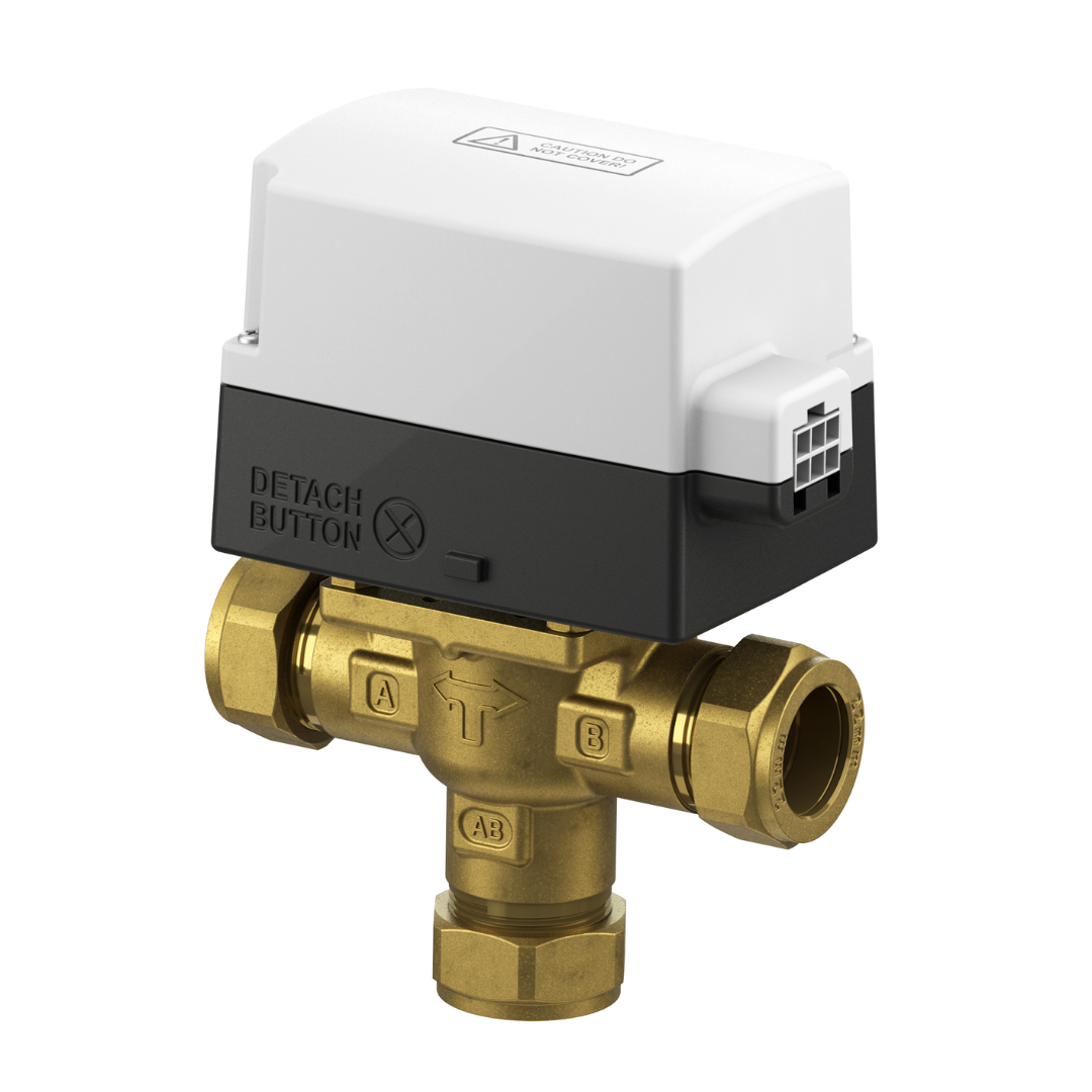 3 port compression motorised valves with detachable actuator and detachable cable. These motorised valves are the perfect solution for zoning your hot water or central heating circuits