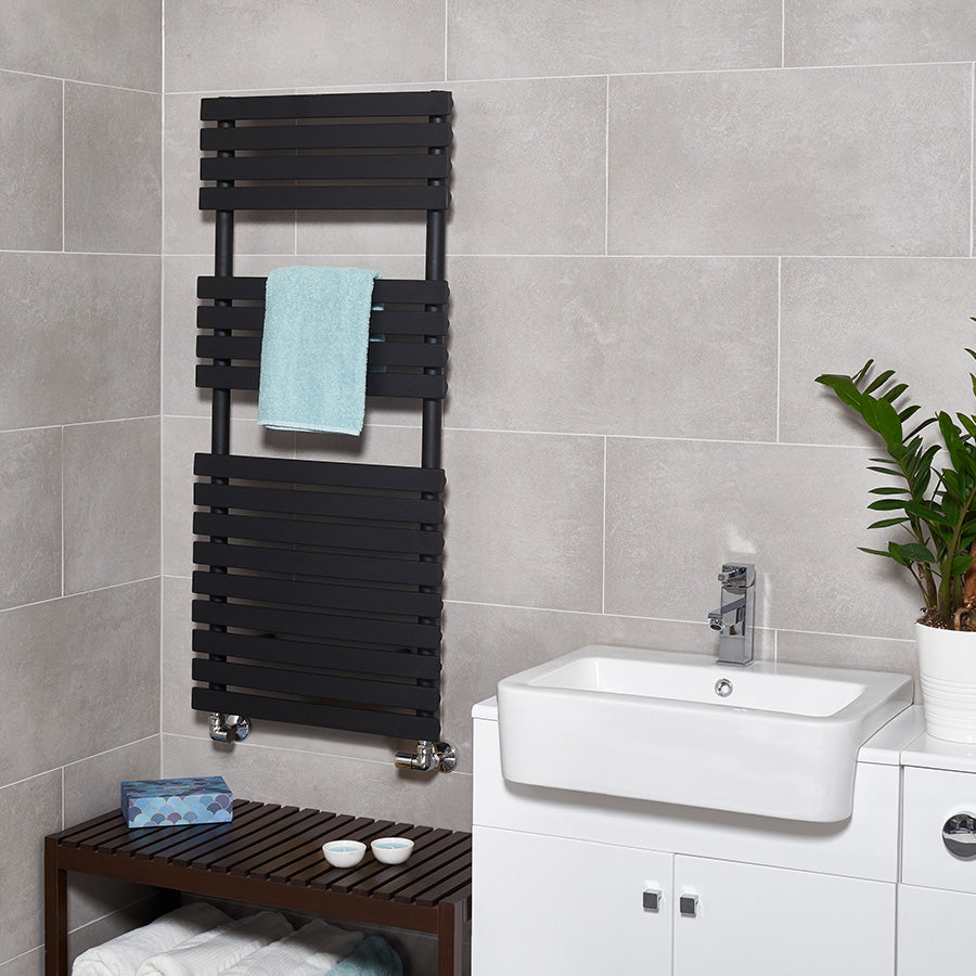 A touch of class. The sleek, tactile bars embrace the vertical columns in a contemporary design to complement any bathroom.
