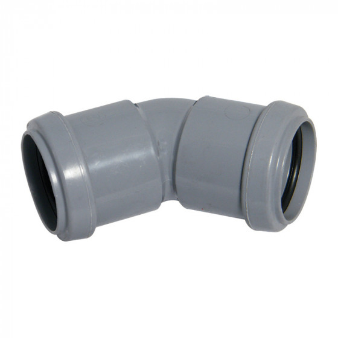 This Push Fit Tank 45 Degree Elbow is designed to be a quick, easy way to join together lengths of push-fit wastepipe when constructing a wastewater system. Manufactured from Polypropylene, to BS EN 1451-1 standards, the coupling is socketed on both ends with push-fit ring seal fittings and is available in 32mm and 40mm diameters