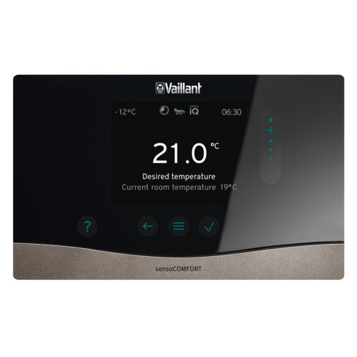 The sensoCOMFORT control allows you to take control of your Vaillant heating and hot water system. Designed to operate with more complex systems; if you have multiple heating zones, renewable products or a hybrid system, the sensoCOMFORT is the control for you. The sensoCOMFORT effortlessly ensures your appliances are working to their peak performance, always maintaining optimum efficiency